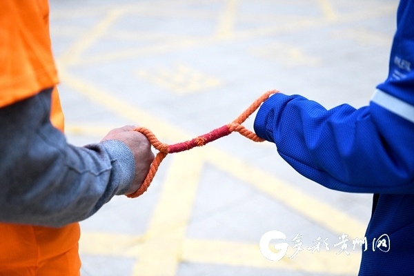 简单寒暄几句,他们迈开步伐。路遇坡道、转弯,志愿者扯紧红绳进行提醒;前路平坦,彭小龙明显感觉到,绳子会松一些。